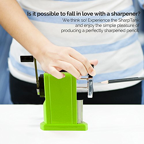 DURABLE, HEAVY-DUTY DESIGN: Beware of cheap imitations, the SharpTank will last; This attractive portable pencil sharpener is made with an all-metal handle, sturdy metal body, and sharp rotary tool good for up to 5000 uses; This heavy duty sharpener has been put to the test in classrooms and offices across the USA and is a top choice of teachers, kids, and artists.