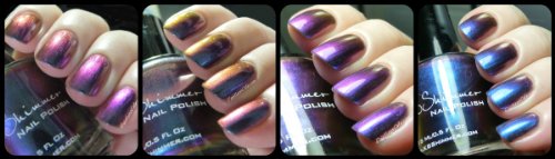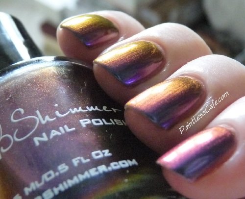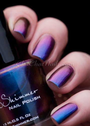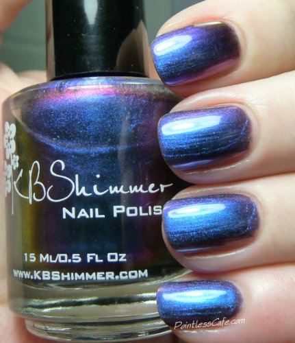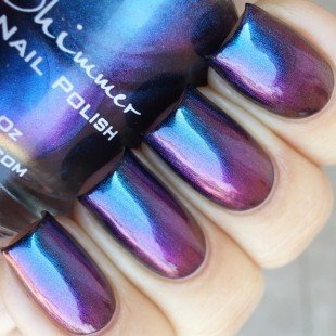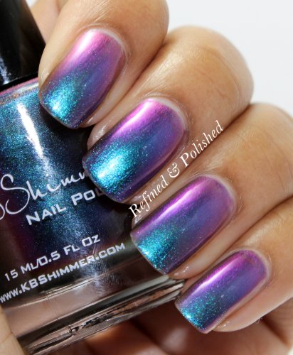 Studio : KBShimmer Publisher : KBShimmer Binding : Misc. Product Description Shade Shifter is a multi-chrome that changes depending on light and angle from cyan, to blue, to red orange, to purple, and more. I most often see a cyan blue shade. Best in 3 coats, or 1 coat over black, this polish is one you will have to see to believe! Type: Multi-Chrome Glitter Load: None Glitter Size: None Recommended Coats: Best in 3 coats, or 1 coat over black, this polish is one you will have to see to believe! Notes: None 0