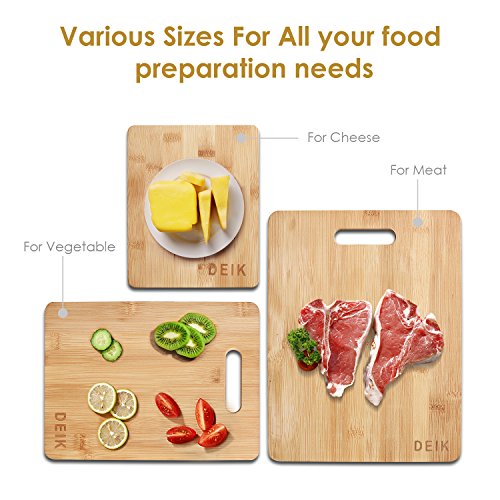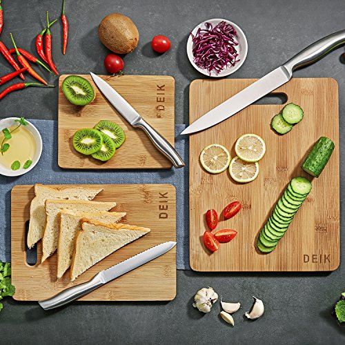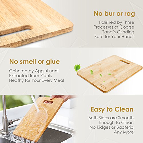 - Material and Prime Quality: Deik chopping board is made of the organic MOSO bamboo, to guarantee its strength, density and durability, safe in the dishwasher. It also won't dull your knives