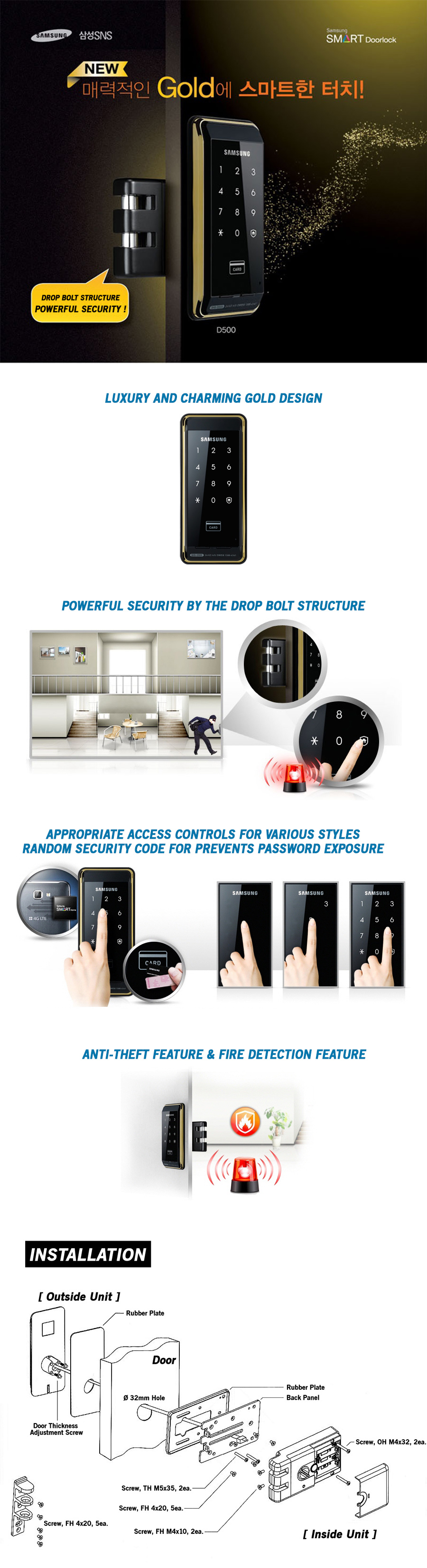 Samsung SHS-D500 Digital Door Lock Luxury Gold&Black