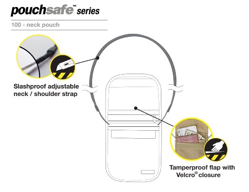 • High-security neck pouch ideal for travelling; compact enough to hide under clothing