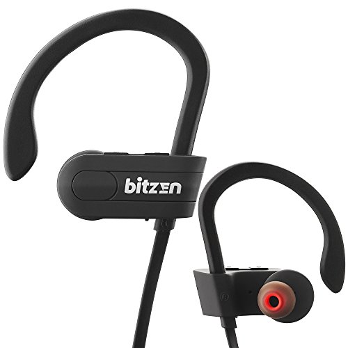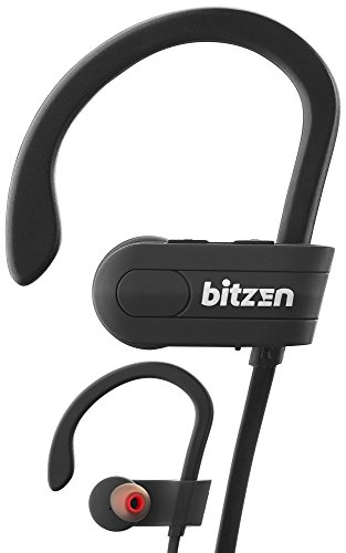 -. Feature : BLUETOOTH COMPATIBILITY: Equipped with Bluetooth technology v.4.1, these outdoor wireless earphones are compatible with any Bluetooth-enabled device - including iPhones, Samsung smartphones, tablets, etc. / HANDS-FREE MICROPHONE: Outfitted with a built-in noise-cancelling mic, the outdoor bluetooth earphones can be used for hands-free calling when running, jogging or working out with 6-8 hours of continuous playback. No longer do you have to stop your workout to answer a call! / VOLUME CONTROL BUTTON: The surface of the silicone earphones with hooks features a mini push button that conveniently allows you to control the volume, pause, stop & play. (You can also use the voice dialing feature if needing to make a call) / COMFORTABLE/LIGHTWEIGHT: Travelers, commuters, daily computer gamers & athletic individuals have fallen in love our splash-proof, extra durable earbuds because they deliver high quality sound without weighing them down. / SPORTY & SWEAT-RESISTANT: Showcasing an ergonomic design that has been developed to cater to athletes such as joggers, runners & bodybuilders, these bluetooth in-ear headphones by Bitzen belong in every collection of essential fitness gear.