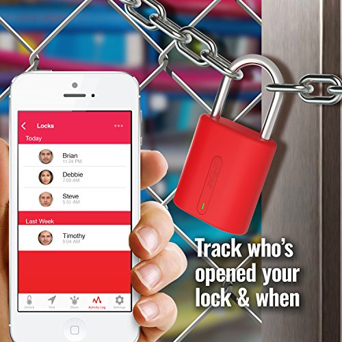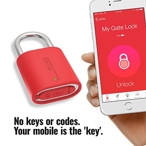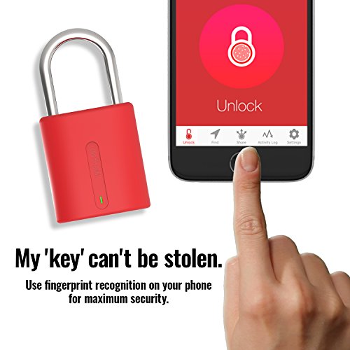 Dog & Bone Locksmart Mini - keyless bluetooth padlock - smart padlock - smart lock - Red