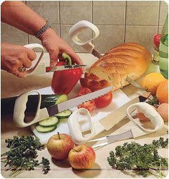 Product Description Blade is set at an angle that minimizes wrist movement. BPA, Phthalates and Latex free. Description: ChefOs Knife. Smooth edge on 8" blade 0