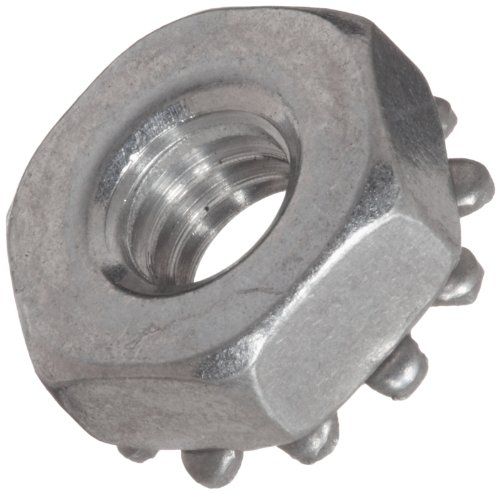 18-8 Stainless Steel Lock Nut, Plain Finish, Right Hand Threads, Self-Locking/Nylon Insert/With Toothed Washer, Inch