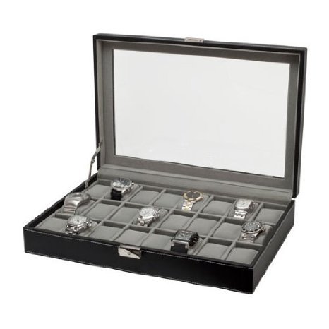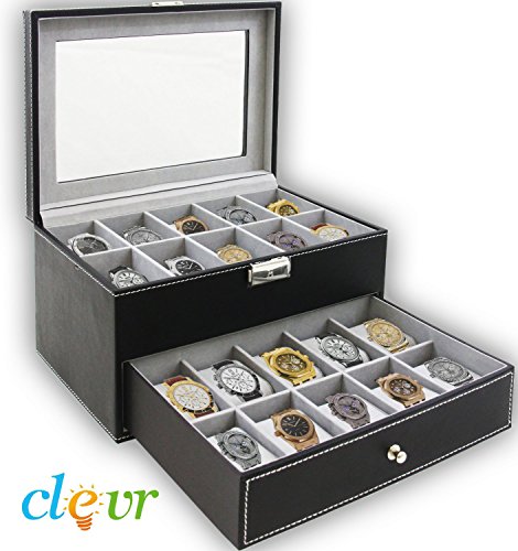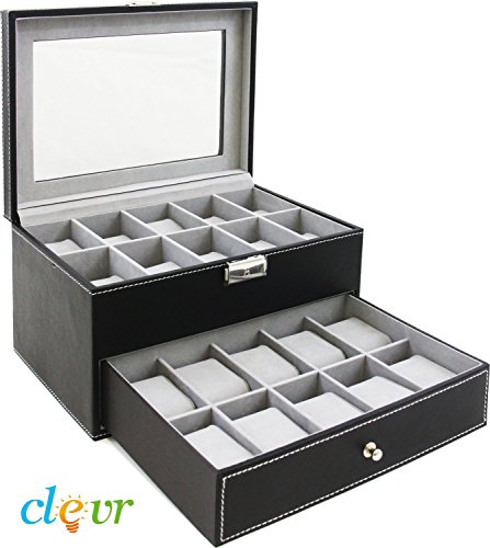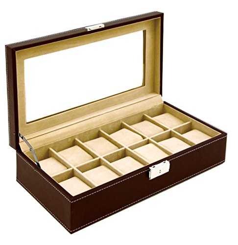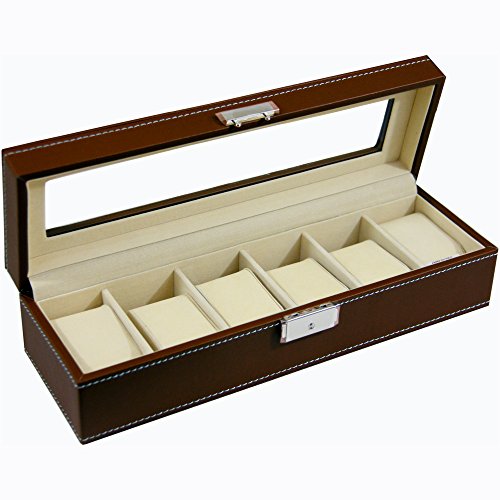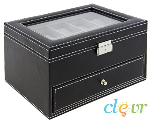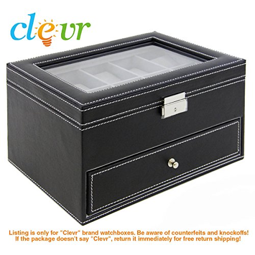 -. Title : Clevr Watch Box Leather Glass Top Jewelry Case Watch Organizer