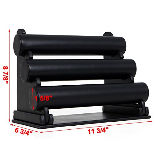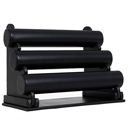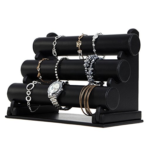 SONGMICS 3-Tier Bracelet Holder Watch Necklace Jewelry Bangle Display Stands Gift for Girls and Women, Faux Leather, Black UJDS104