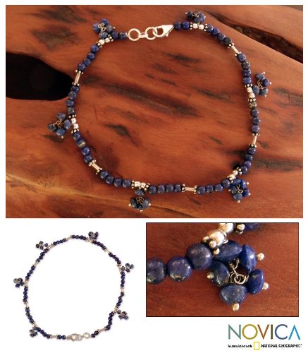 -. Binding : Jewelry -. Brand : NOVICA -. Department : womens -. EAN : 0808773175426 -. Feature : An original NOVICA fair trade product in association with National Geographic. / Includes an official NOVICA Story Card certifying quality & authenticity. / NOVICA works with Narayani to craft this item. / Includes an original NOVICA jewelry pouch to keep for yourself or give as a gift. / Maximum length: 9.75 in. L x 0.1 in. W; Minimum length: 9.5 in. L x 0.1 in. W -. Label : NOVICA -. Manufacturer : NOVICA -. MPN : 167140 -. PackageQuantity : 1 -. PartNumber : 167140 -. ProductGroup : Jewelry -. ProductTypeName : FINENECKLACEBRACELETANKLET -. Publisher : NOVICA -. Studio : NOVICA -. Title : NOVICA Lapis Lazuli .925 Sterling Silver Beaded Anklet, 9.75", 'Blue Berries' -. UPC : 808773175426
