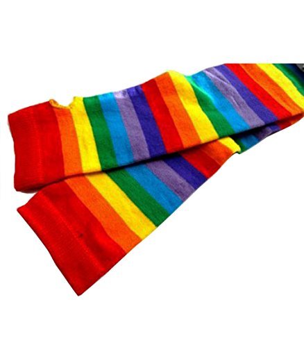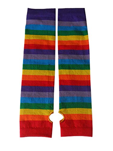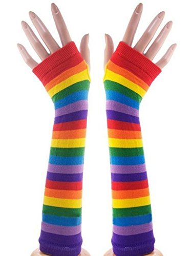 Jelinda Unisex Gotik Rock Rainbow Color Long Arm Warmer Fingerlose Weihnachten Kostum Kleid Regenbogen Handschuhe Gloves