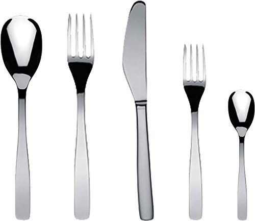 Alessi "KnifeForkSpoon" Flatware Set Composed Of One Table Spoon, Table Fork, Table Knife Monobloc, Dessert Fork,Tea Spoon in 18/10 Stainless Steel Mirror Polished, Silver