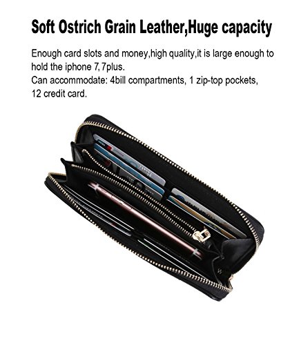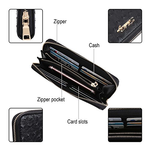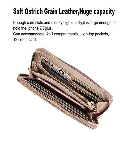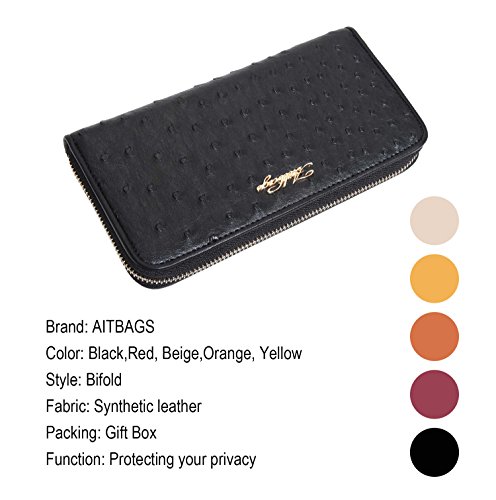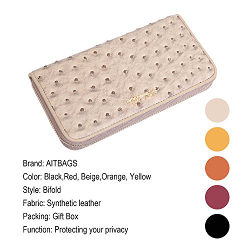 -. Title : Aitbags Women Soft Ostrich Grain Leather Wallets for Women Zippered Arround Clutch Purse