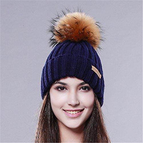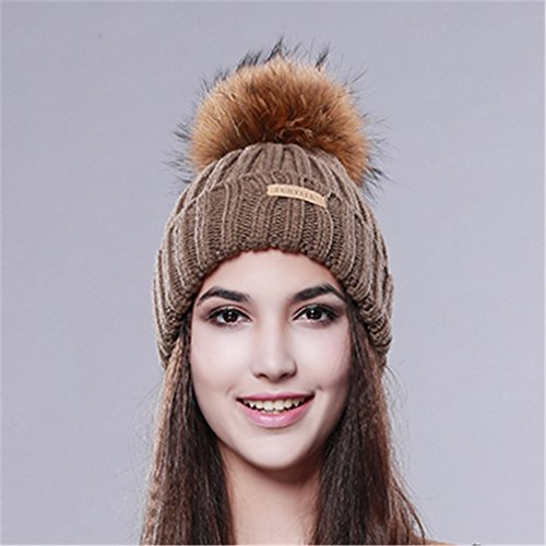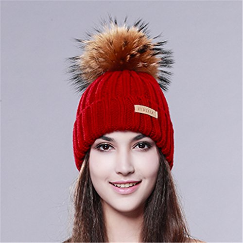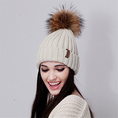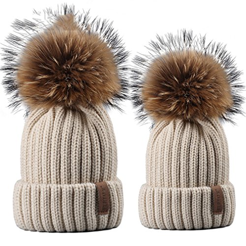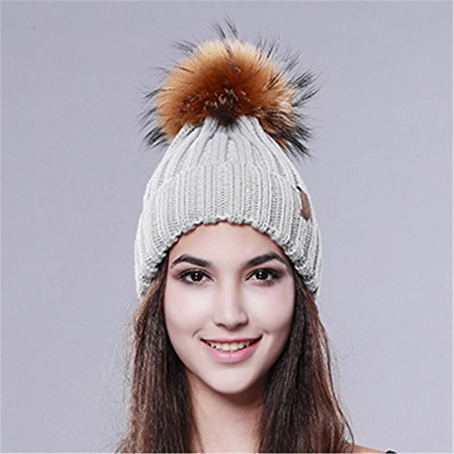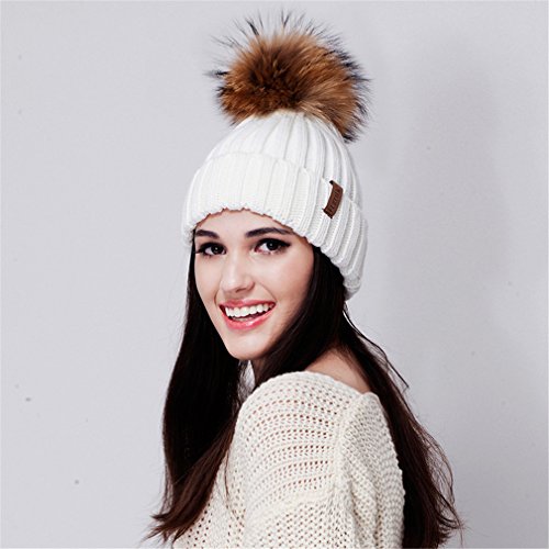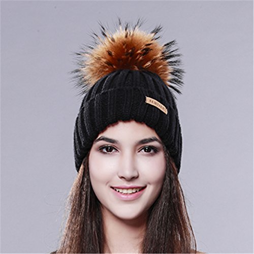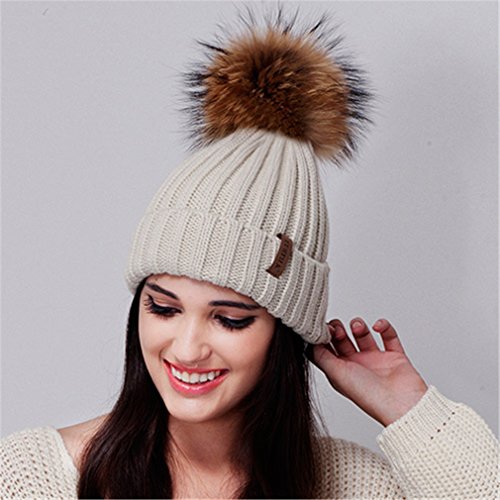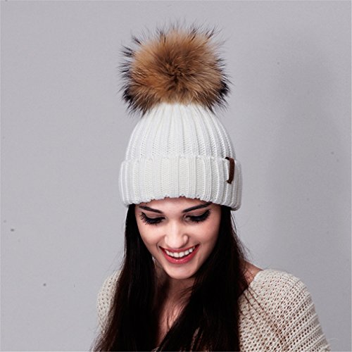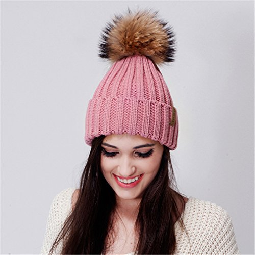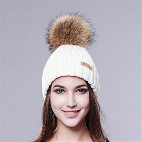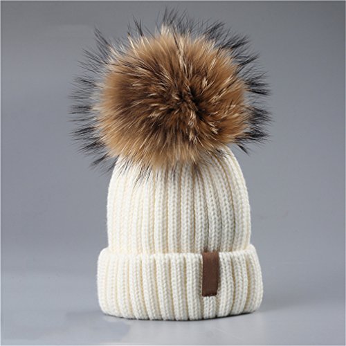 | (Yastyen)/Accessories/Cold Weather Accessories/DIRECT FROM USA/Fur Hat Knitted Big Raccoon Pom Pom Hat Women Winter Hat Unisex Kids Ages 4-12 Warm Chunky Thic... |