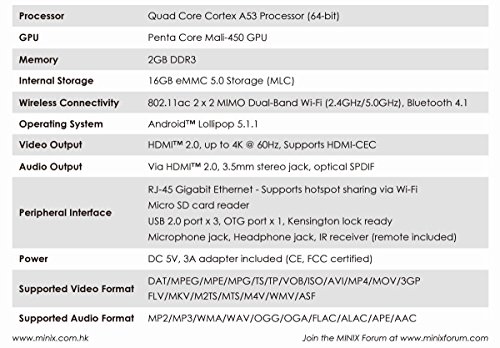 MINIX NEO U1 TV BOX SPECIFICATION: Processor: Quad-core CortexA53 Processor(64-bit)