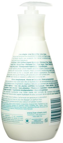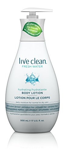 Live Clean Fresh Water Hydrating Body Lotion blends vitamin E with hyaluronate to moisturize and nourish skin from the inside out for a smooth and radiant appearance. Our lotion is infused with certified organic botanicals for optimal hydration for normal to dry skin. This lotion is 98% plant-based, vegan, not tested on animals and free from parabens, sulfates and harmful chemicals. Includes one 17 oz. bottle of Live Clean Fresh Water Hydrating Body Lotion. Founded in 2007, the Live Clean brand was created with a simple vision: to create high-performance skin and hair care products that celebrated beauty while honoring the earth. We believe that living clean isn't just about what we eat, but it's also about the products and ingredients we put on our bodies. Live Clean products harness the beautifying power in plant-based ingredients for gentle and effective products that are safe for you and the environment.Feature