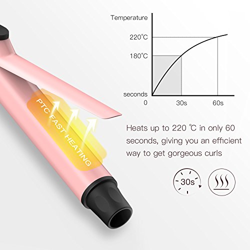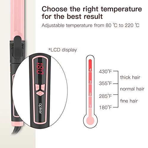 Curling Iron 1 inch, Apiker Ceramic Curling Wand with PTC Fast Heating Technology, Professional Salon Hair Curler, 220°F-430 °F Digital Temperature Setting for...
