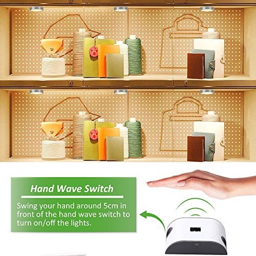 HAND WAVE ACTIVATED: The Sensitive Sensor of our Under Cabinet Lights turn ON/OFF with a simple wave. Great for Busy Days in the Kitchen. No pesky remote control that gets dirty and bothers you while you work.