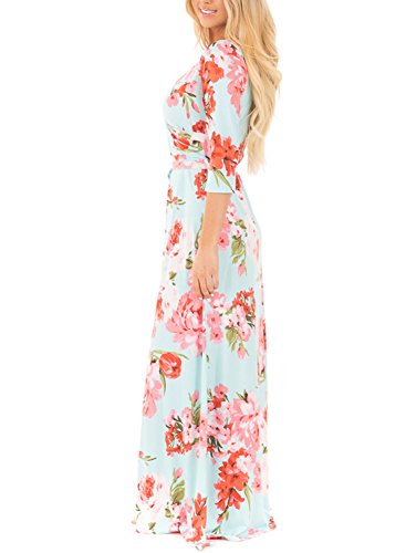 Dokotoo Womens Summer Floral Print Maxi Long Dresses with Belt (8 Floral Pattern, S-XXL)