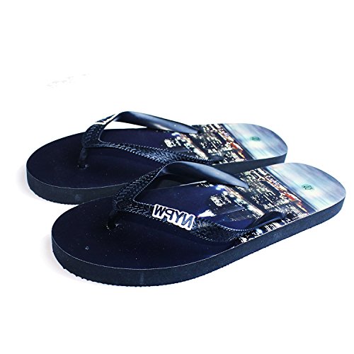 (P W New York)/Women's/Sandals/DIRECT FROM USA/P W New York Women's Casual Black Rubber Flip Flops Slippers, City Skyline Print