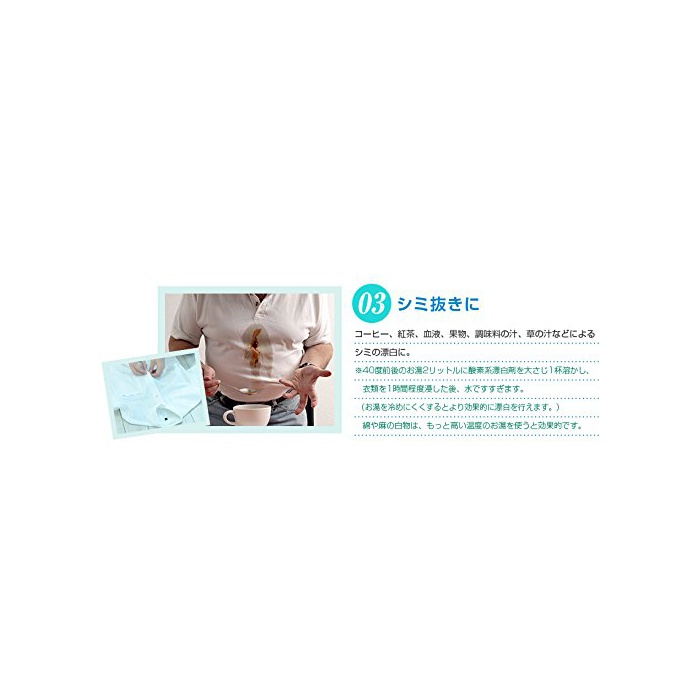 세탁물이나 부엌 용품의 제균표백제취에 최적.산소계이기 때문에,색무늬 대부분 옷으로도 쓸만합니다.