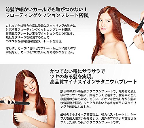 .현역 스타일리스트도 인정한 완전 프로 사양.쓸데없는 압력을 막아 데미지를 경감하는 쿠션 플레이트,사용중에 휘감기지 않는 360°회전 코드,야케(벌겋게 되거나 푸르퉁퉁해짐) 드나 화재를 막는 오토 파워OFF등 충실 기능 가득.