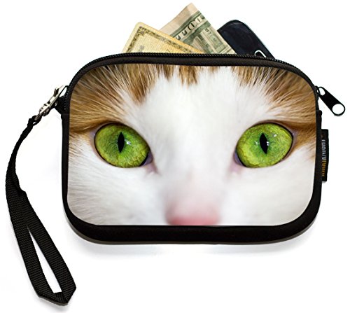 -. Title : UKBK Close-Up Of Lime Green Eyed Cat Neoprene Clutch Wristlet