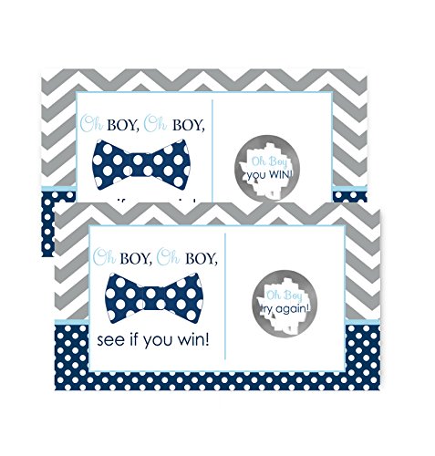 Bow Tie Baby Shower Scratch Off Game Cards Navy & Grey Chevron