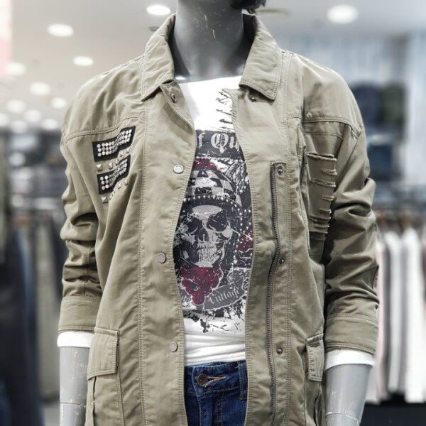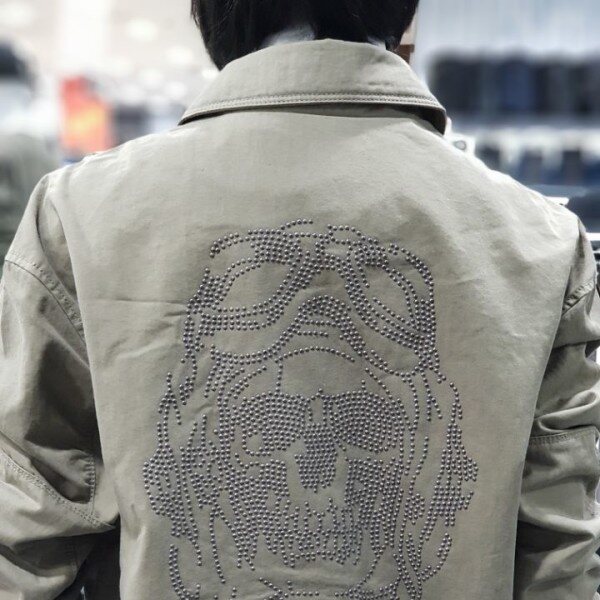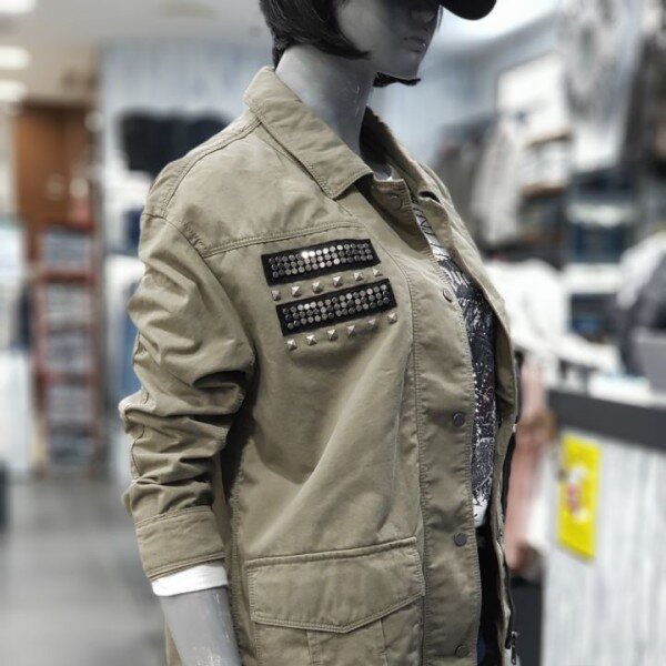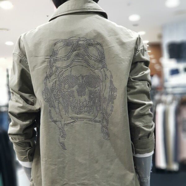 버커루 여성 루즈핏 SKULL 핫픽스 야상점퍼입니다.등판에 SKULL 핫픽스장식이 포인트인 제품으로 빈티지하면서 캐주얼한 스타일입니다.