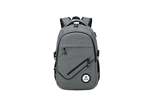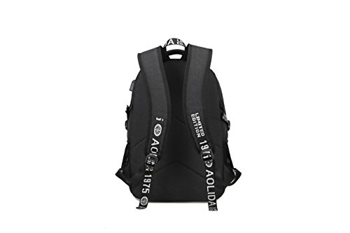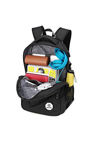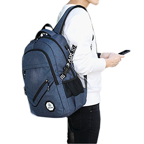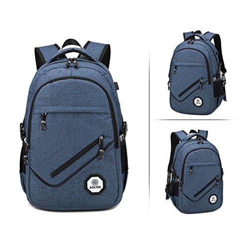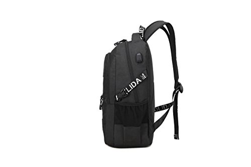 -. Feature : 3 main pockets & 9 inner small pockets & 2 sealed side pockets, provides a separated space for your laptop, iPhone, iPad, clothes, keys and more. / Durable metal zippers. / External USB with built-in charging cable. / Made from high density oxford with two "s" curve padded shoulder straps,extra thick and comfortable handoffers light-weight carrying and of force reinforcement. / Dimensions:17.7 x 11.8 x 5.9 inch with dedicated laptop compartment holds laptops less than 17 inch.