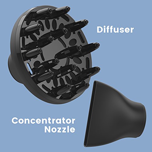 xtava Ionic Blow Dryer Voluminous Toolkit with Hair Diffuser - Professional Quality Ceramic Hair Dryer with Nozzle Diffuser Attachment - Create Salon Volume...