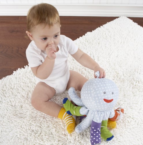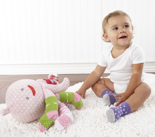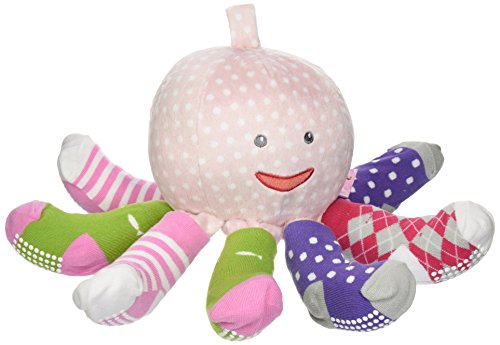 -. Binding : Baby Product -. Brand : Baby Aspen -. Color : Pink -. Department : baby-boys -. Feature : Plush octopus with polka dots, a friendly face, a head that rattles and eight sock-covered tentacles / Includes four pair of socks with slip-proof bot / Polyester octopus can be surface-washed; cotton-polyblend socks can be machine washed / Octopus measures approximately 11" H x 10" W -. Label : Baby Aspen -. Manufacturer : Baby Aspen -. Model : BA15004BL-PARENT -. ProductGroup : Baby Product -. ProductTypeName : BABY_PRODUCT -. Publisher : Baby Aspen -. ReleaseDate : 2010-08-20 -. Studio : Baby Aspen -. Title : Baby Aspen Plush Octopus with 4 Pairs of Socks