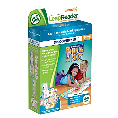 -. Binding : Toy -. Brand : LeapFrog -. EAN : 0708431212114 -. Feature : Discover how the amazing human body works! / Includes a jumbo, 2-sided activity board, growth chart, interactive sticker sheets and glow-in-the-dark stickers. / Teaches human body facts, body systems and health & nutrition. / Ages 4-8 years. / Works with Tag and the LeapReader Reading & Writing System (sold separately). -. IsAdultProduct : 0 -. ItemPartNumber : LEA014 -. Label : Leapfrog -. LegalDisclaimer : Book only. Cartridge not included in this offer. -. Manufacturer : Leapfrog -. Model : 21211 -. MPN : 80-21211E -. PackageQuantity : 1 -. PartNumber : 80-21211E -. ProductGroup : Toy -. ProductTypeName : TOYS_AND_GAMES -. Publisher : Leapfrog -. Studio : Leapfrog -. Title : LeapFrog LeapReader Interactive Human Body Discovery Set (works with Tag) -. UPC : 659213172358 -. Warranty : 90 day warranty against manufacturer defects