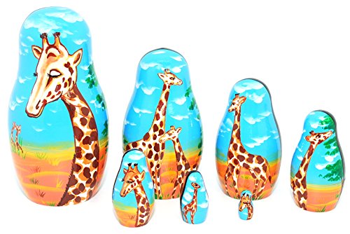 -. Title : Authentic Russian Hand Painted Handmade Nesting Dolls Set of 7 Pc Giraffe Family Matryoshkas 5.5" - Offered by Gabriella's Gifts