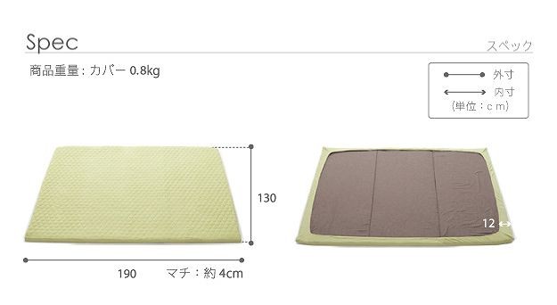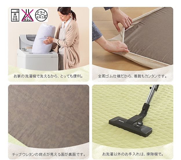 送料について:沖縄・一部離島の送料は別途お見積りとなります。【専用カバーのみ】ふわふわパイルの厚敷き防音ラグフワモパイルの専用カバー130×190cm。サラサラと肌触りの良いシンカーパイル地♪被せるだけのふちゴム式なので着脱も簡単です。ご家庭で丸洗いOK!お子様のいるご家庭にもオススメです。サイズ(cm):幅130x奥行190cm・約0.8kgカラー:ベージュ・グリーン材質:表地-綿75%・ポリエステル25%、裏地-ポリエステル80%・綿20%完成品(21101567)