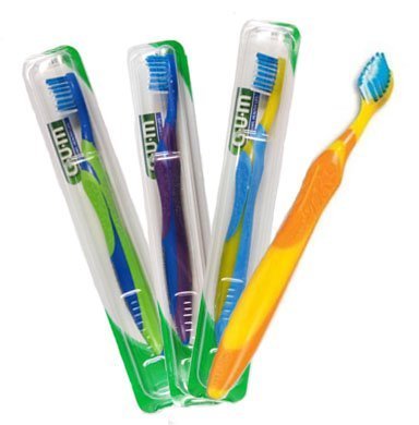 -. Feature : Gum 221 technique kids toothbrush Unique, raised-center Dome-Trim bristles clinically proven to clean below the gum line where periodontal disease starts. / Ultra-cushioned, patented Quad-Grip handle guides child's hand to the proper brushing angle. / Recommended by dental professionals / Assorted colors