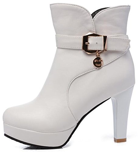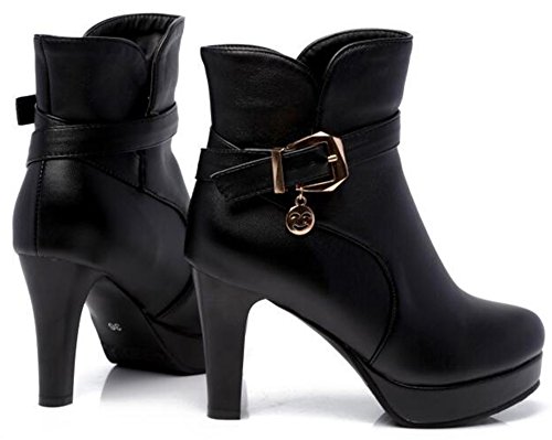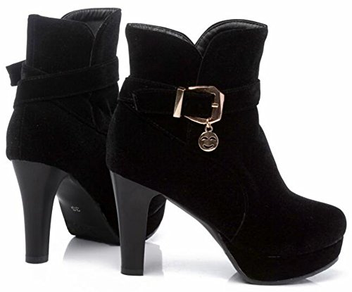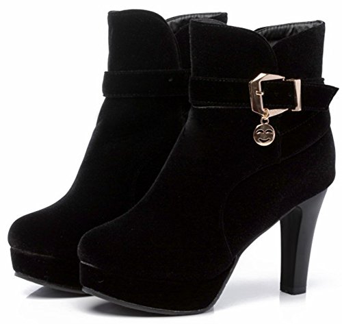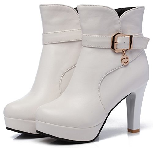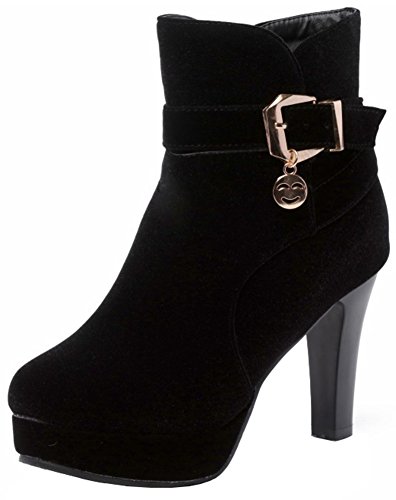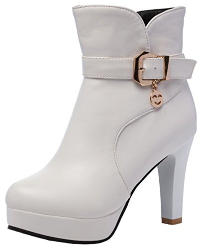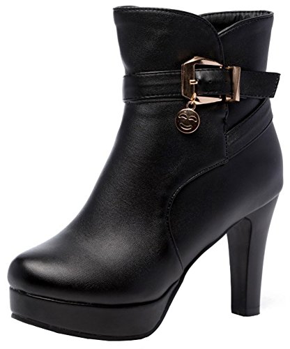 (Mofri)/Women's/Boots/DIRECT FROM USA/Mofri Women's Trendy Buckle Strap Chunky High Heel Platform Short Boots Round Toe Side Zipper A...