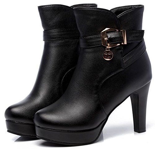 You're not fully dressed to be impressed without a right pair of shoes! The pair of right shoes can make all the difference. If you're trying to get boots that will send a message with your every step, there's no finer footwear to add glamour close to you than these boots from Mofri. These boots don't whisper; they scream with their distinctive and trendy design. This pair of boots make you stand out in any crowd and are sure to heat things up no matter what you wear with them. The heels raise your height and giving the shoes a shape that is reflection of the latest trends. These shoes from Mofri is made from top quality vegan synthetic leather. Leave those boring basic boots behind. Make this pair boots as your fashion secret weapon and you'll be able to have some sexy appeal which will be the soul of your everyday ensembles. Order a pair in your favorite color! Can't decide? Why not get more? You'll still pay less than the price you would for a single designer pair elsewhere. We will make you always be on the cutting edge of women' s fashion. Mofri is a legal trademark which has registered in United Stated Patent Trademark Office. All right reserved.