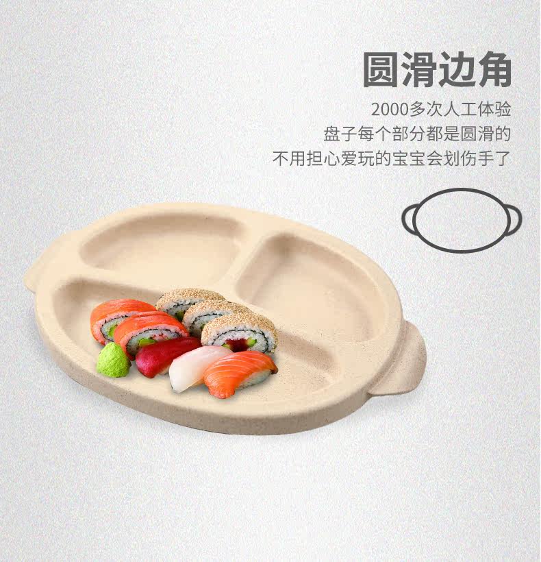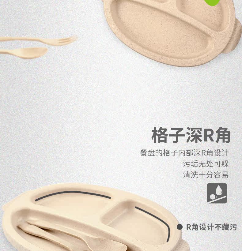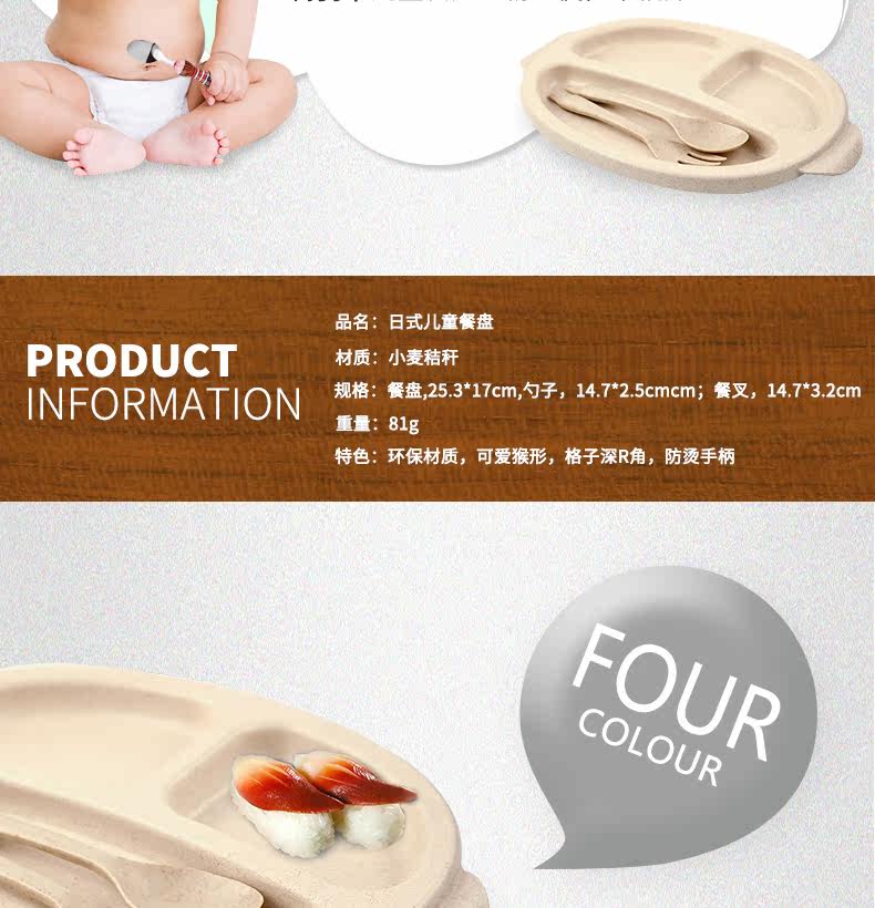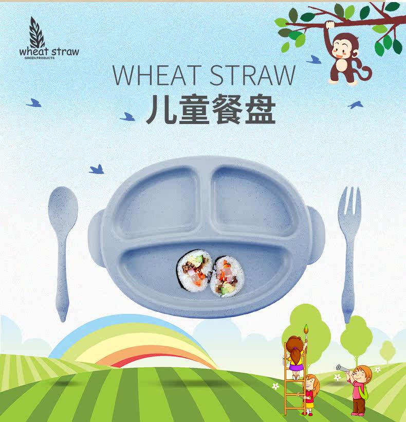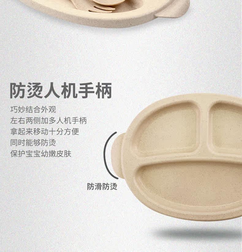 小麦日式儿童餐盘创意宝宝菜盘子分格卡通餐具叉勺盘3件套