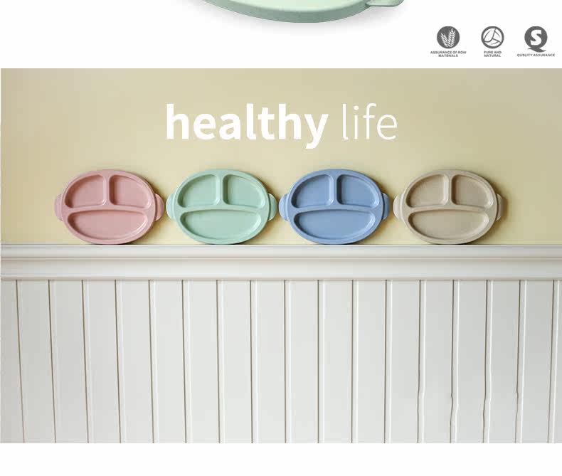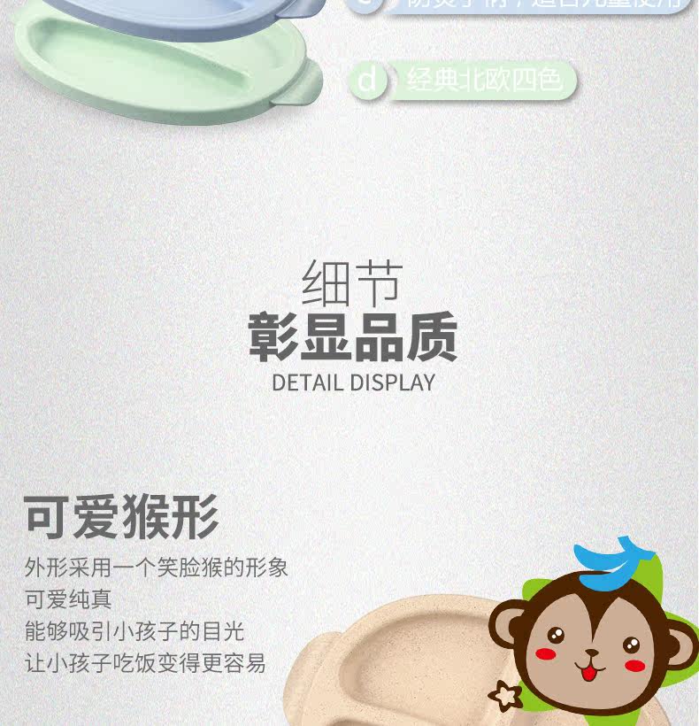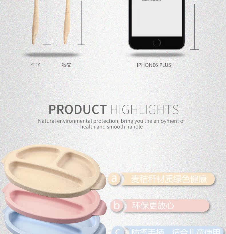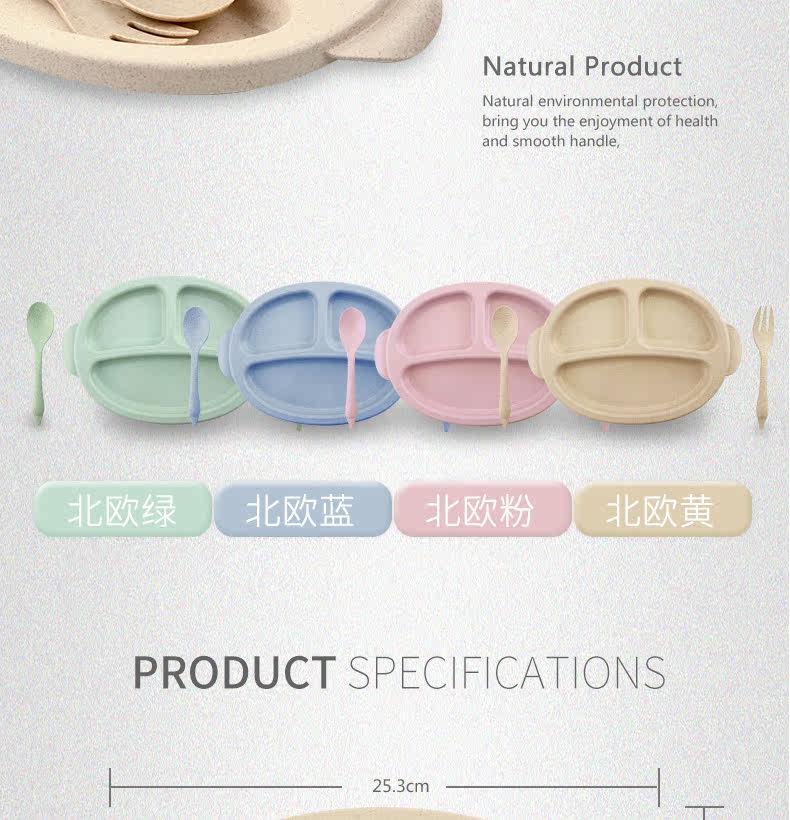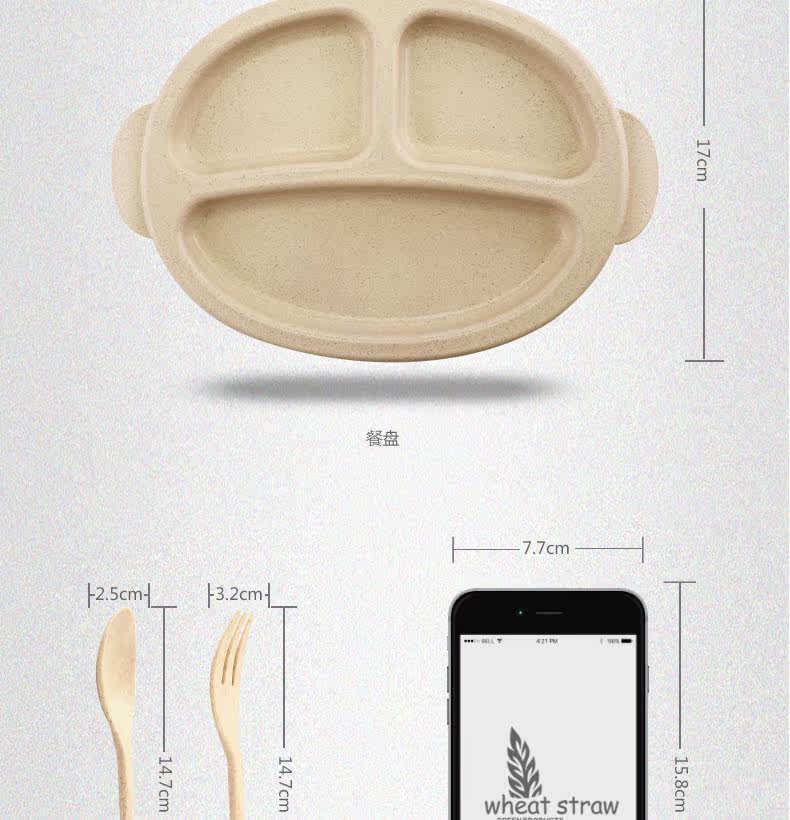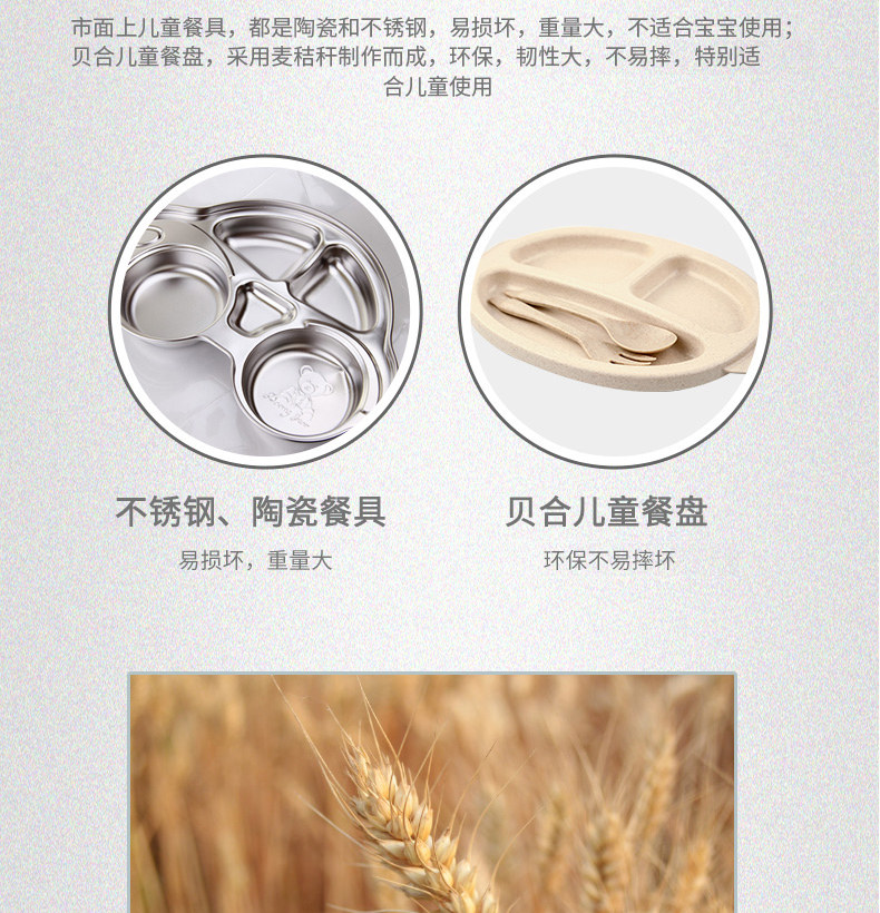 小麦日式儿童餐盘创意宝宝菜盘子分格卡通餐具叉勺盘3件套