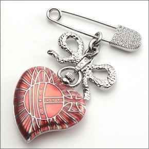 크기:(하트&리본)H 약45mm×W33mm/무브먼트:쿼츠/방수 기능:비방수/사양:broach풍 워치/부속품:전용BOX,보증서/중량:34g