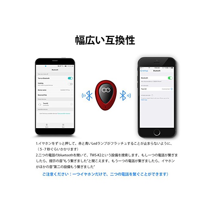 ♬【호환성이 넓다】iPad,Apple7 6 6s Plus 5 5s SE , Samsung S8 S7 S6 S5 Plus , Note 8 7 6 5 4 ,Huawei,LG G5 G4 G3등과 같은 Bluetooth디바이스도 대응에서 옵니다.Bluetooth의 송수신 거리는 10m까지,하나Bluetooth이어폰은 2대 디바이스를 동시에 접속 가능합니다.
