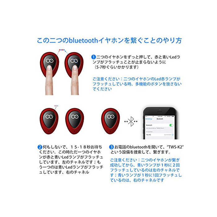 원본상품명: Bluetooth イヤホン Lermom Losei 片耳耳 ワイヤレスヘッドホン V4.1 ヘッドセット大部分スマホ(赤)