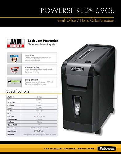 - Title : Fellowes Powershred 69Cb 10-Sheet Cross-Cut Shredder (110V only)