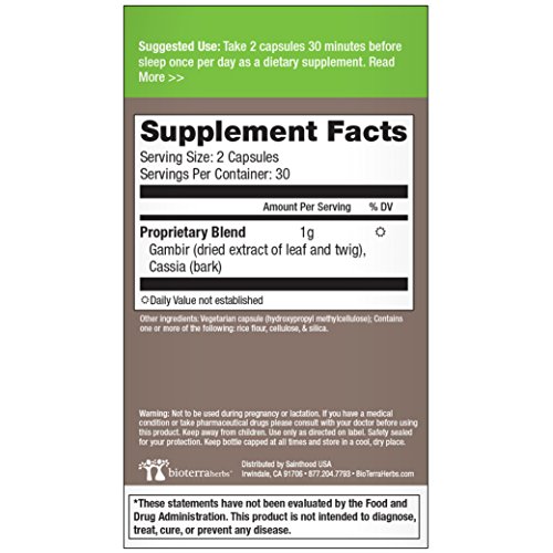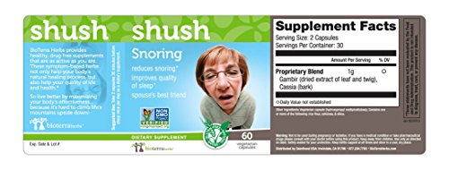 -. Feature : SNORING by BIOTERRA HERBS contains CASSIA, which is a type of CINNAMON. It contains a high level of ANTIOXIDANTS like those of many other ESSENTIAL OILS. CASSIA may have ANTI-INFLAMMATORY PROPERTIES because of its FLAVONOID COMPOUNDS.* / GAMBIR has been used in this formula because it may help REDUCE SPASMS and REDUCE INFLAMMATION.* / Use of microbial, and heavy metal testing to ensure ingredients are high quality. MADE IN THE USA! / 60 Capsules per bottle, 1 month supply, continue use until desired results are achieved.