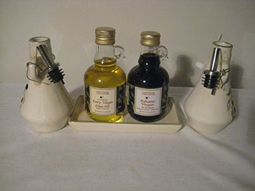 -. Title : Cucina Toscana Hand Painted Ceramic Oil Cruet, Vinegar Cruet, Serving Tray & Extra Virgin Olive Oil Aged Balsamic Vinegar