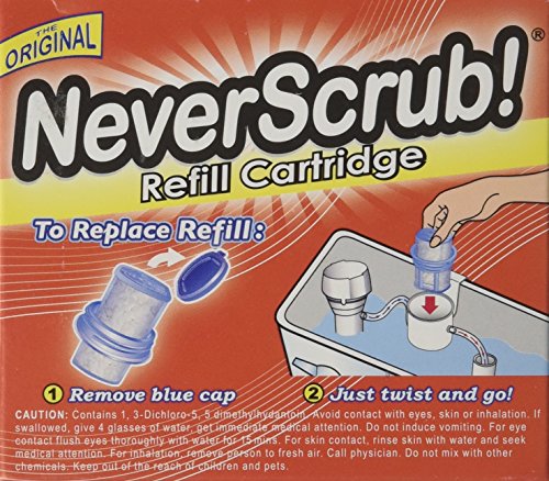 -. Brand : NeverScrub -. EAN : 8855663208483 -. Feature : Use as a refill for your NeverScrub System: lasts 3-5 months! / Automatically scrub away tough stains / Your toilet will never look cleaner / Say goodbye to hard scrubbing and physical cleaning / Works continuously to prevent stains from forming -. IsAdultProduct : 0 -. Label : NeverScrub -. Manufacturer : NeverScrub -. Model : H&PC-86209 -. MPN : 13747 -. PackageQuantity : 1 -. PartNumber : 13747 -. ProductGroup : Health and Beauty -. ProductTypeName : PERSONAL_CARE_APPLIANCE -. Publisher : NeverScrub -. Studio : NeverScrub -. Title : Refill Cartridge for NeverScrub System 1.65oz (6 Pack)