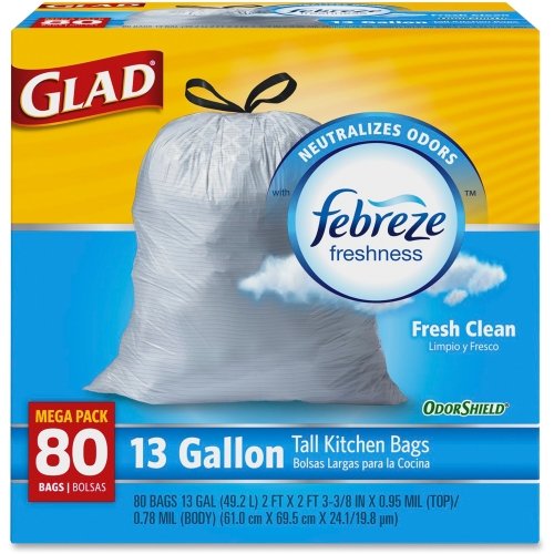 -. Title : OdorShield Tall Kitchen Drawstring Trash Bags, Fresh Scent, 13 Gal, 80/BX, 4/CT CLO78534CT