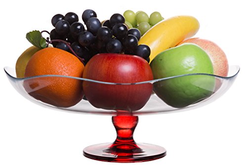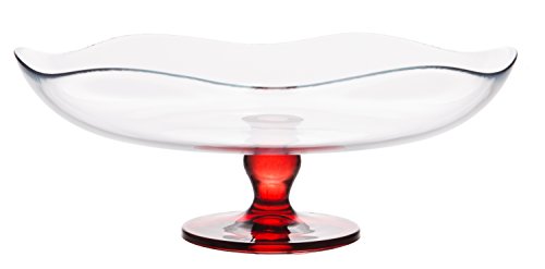 - Featuring a curved, scalloped rim and supported by a red pedestal; Made of high quality, thick, and extremely durable glass