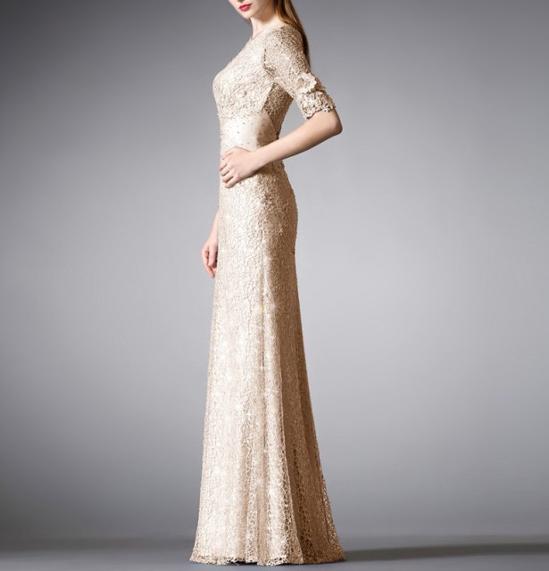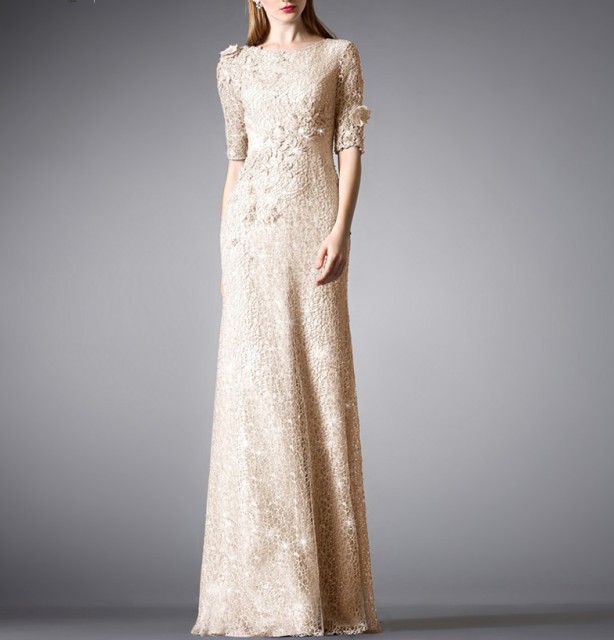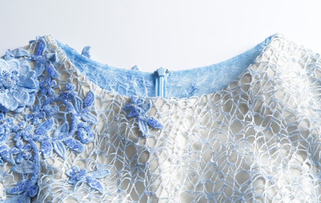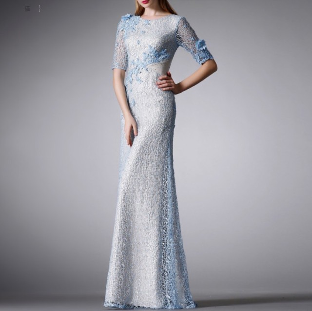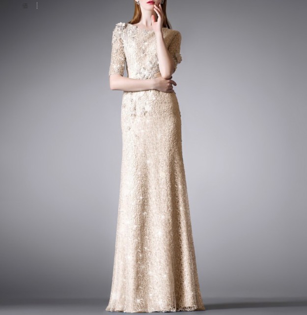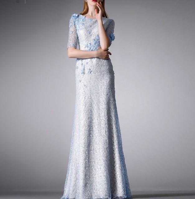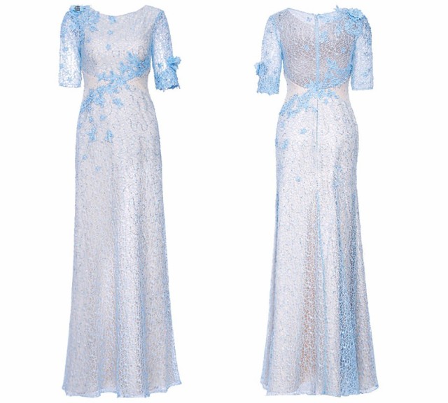 全身に花のコサージュをちりばめた優美なイブニングドレス☆