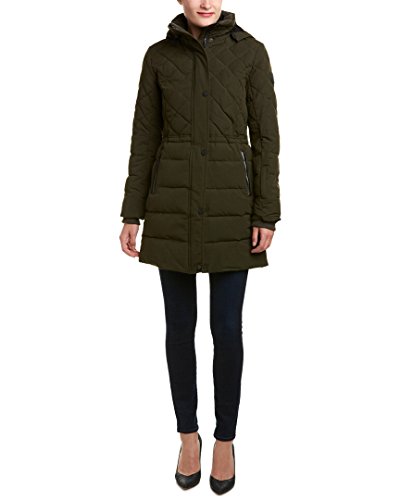 Lucky Brand Women's Mid Length Down Puffer Quilted Detail, Detachable Hood