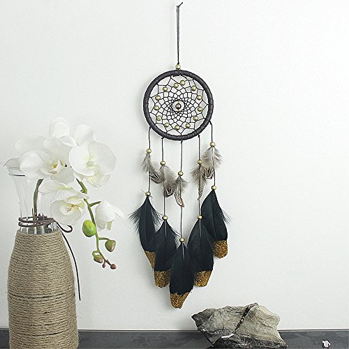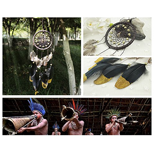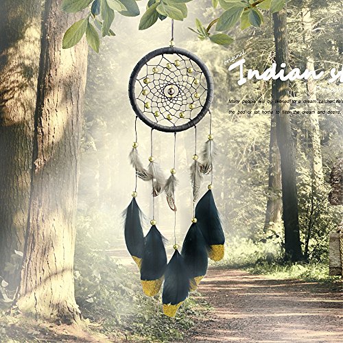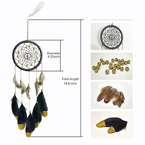 Karleksliv Mysterious Dream Catchers 100% Handmade dreamcatcher Home Ornament Circular Net For Car Kids Bed Room Sweet dream net black feather Golden beads brown circle D 4.33 inch/L 18.8 inch XM005